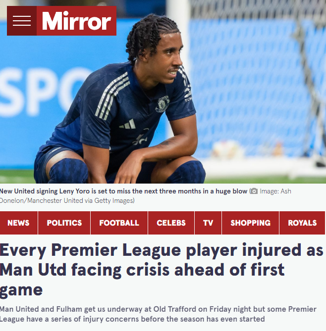 英超开赛在即,但各队均却不同程度遭遇了伤病的影响,根据《镜报》的统计,除了富勒姆和诺丁汉森林之外,其余球队均遭遇不同程度的困扰,其中曼联、纽卡斯尔和布莱顿各有5人在伤病名单。
