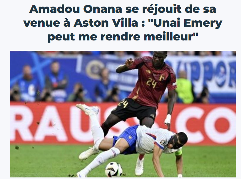 不久前,维拉正式宣布签下比利时国脚奥纳纳。他在接受采访时表示,国家队队友蒂勒曼斯和主教练埃梅里是他选择这里的原因。